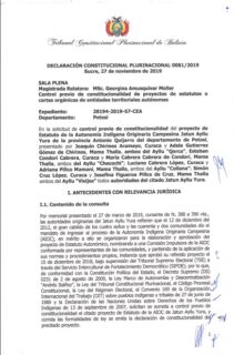 Fue aprobado en un cabildo realizado el 20 de noviembre de 2020 con la participación de 43 comunidades y declarado constitucional el 27 de noviembre de 2019 por el Tribunal Constitucional Plurinacional.